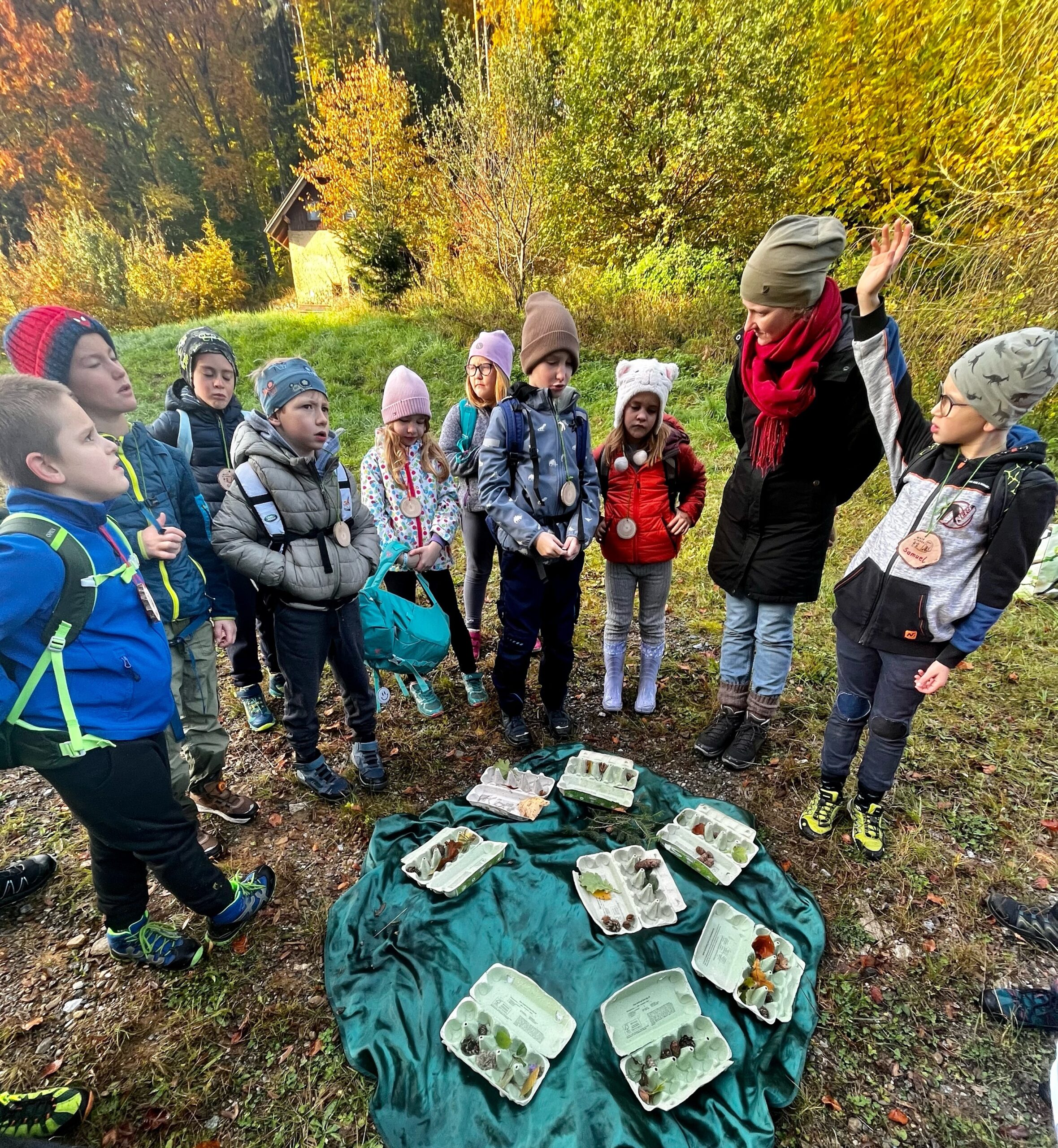 Die zweite Klasse startet ihre Jahreszeiten-Waldtage mit Waldpädagogin Elisabeth Damm. Es geht um richtiges Verhalten im Wald, um die Stockwerke des Waldes, um die Vielfalt der Bäume und um die Natur, die sich im Herbst verändert und auf den Winter vorbereitet.