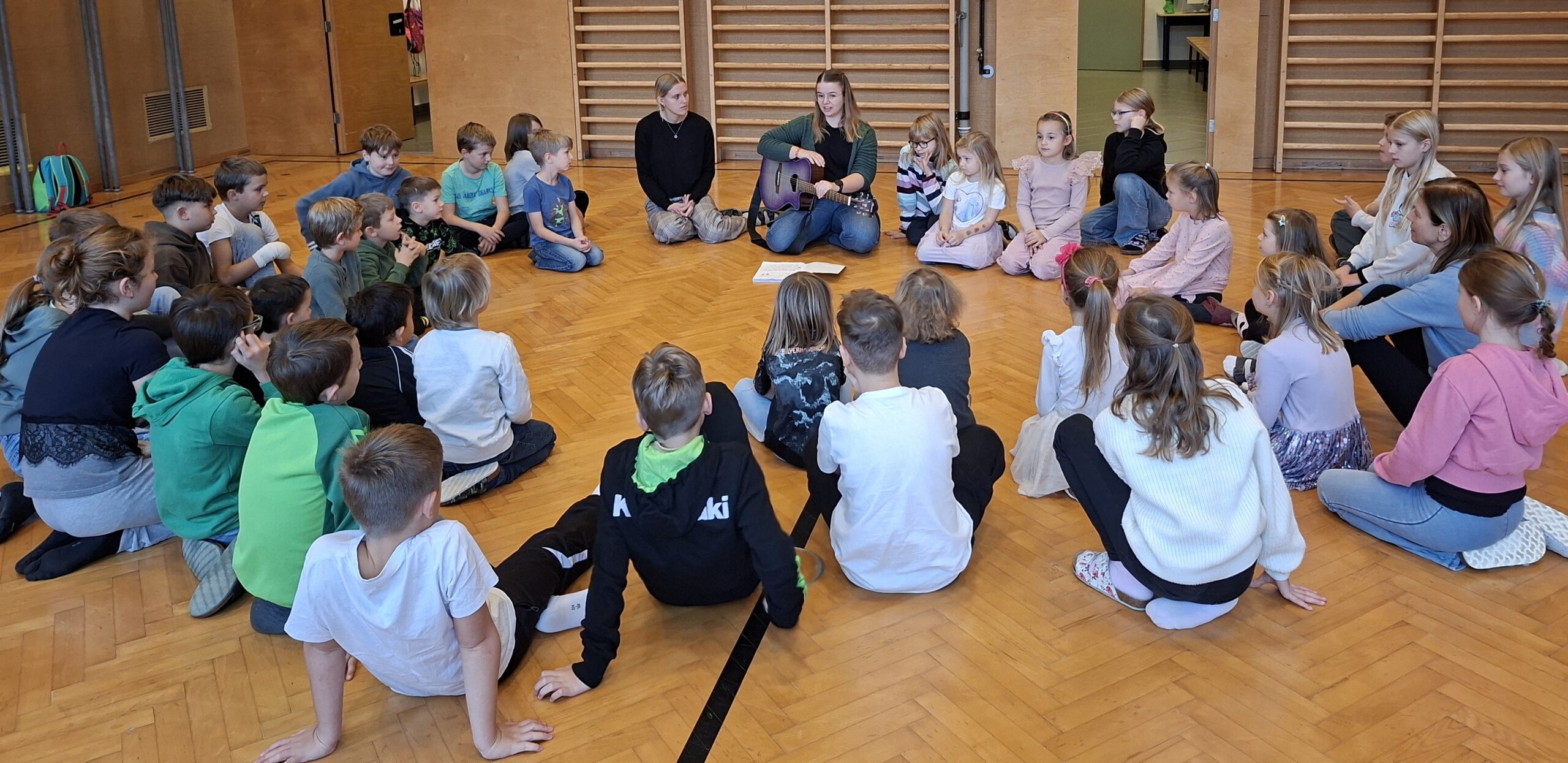 Die Schnupperkinder werden von der vierten Klasse mit einem Namensspiel und einem Begrüßungslied empfangen. Nach einem Spaziergang durch das Schulhaus wird gejausnet und anschließend gibt es Hofpause gemeinsam mit allen Schulkindern. Im Klassenzimmer gestalten die Großen mit den Kleinen ein Lesezeichen. Wir freuen uns schon auf den Schnuppertag im Sommer!