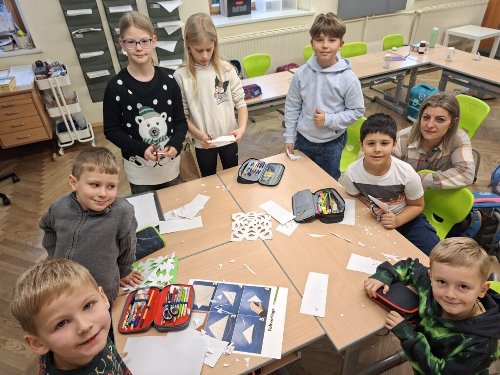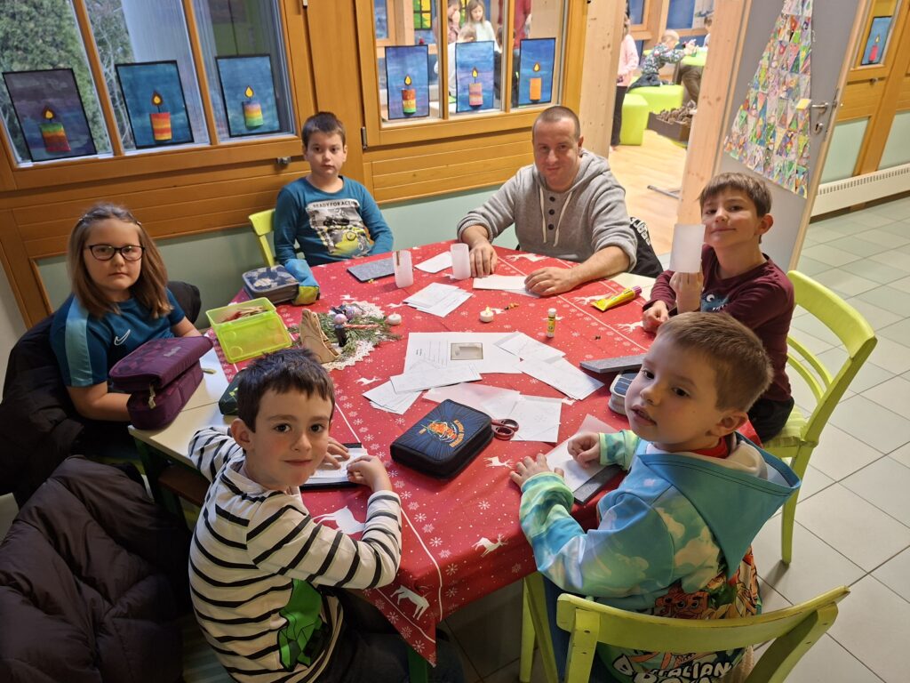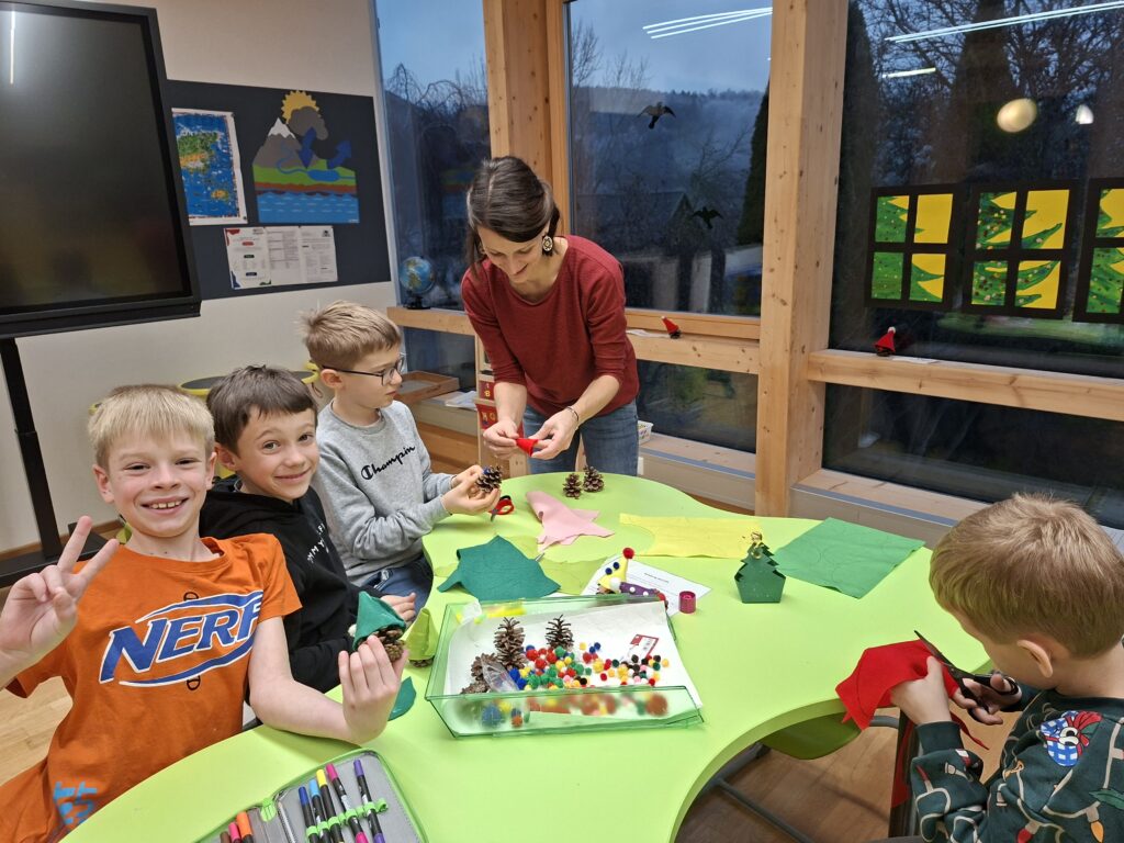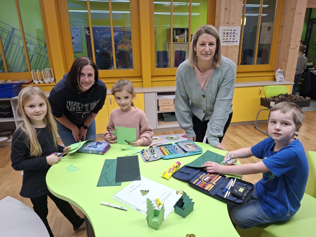 Beim Advent-Stationen-Basteln mit Unterstützung fleißiger Eltern entstehen viele verschiedene Werkstücke und Bastelarbeiten rund um Weihnachten. Sowohl Kinder als auch Eltern und Pädagoginnen genießen das vorweihnachtliche Miteinander und die schöne Stimmung im ganzen Schulhaus.