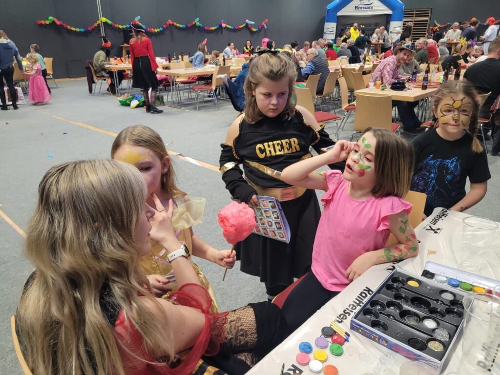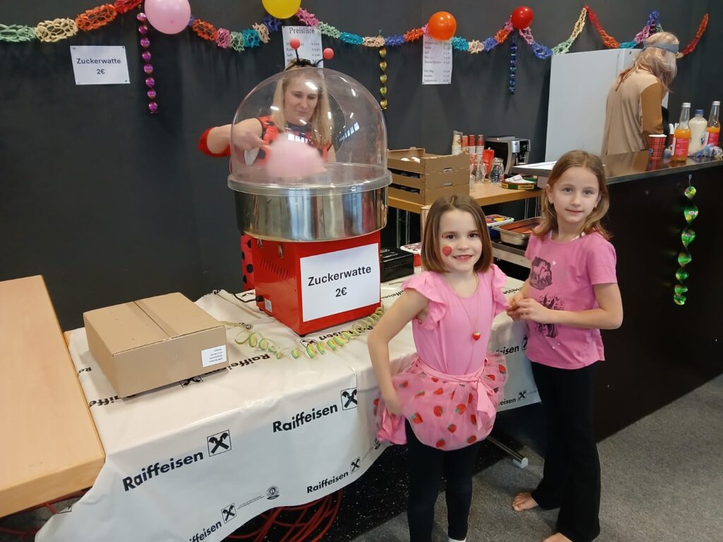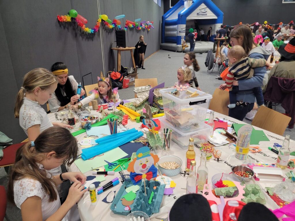 Für das leibliche Wohl war bestens gesorgt: Neben Getränken und herzhaften Snacks durften natürlich auch köstliche Krapfen und flaumige Zuckerwatte nicht fehlen. Ein besonderes Highlight für die Kinder war das Kinderschminken, bei dem sie sich in Schmetterlinge, Tiger oder andere Wunschfiguren verwandeln lassen konnten. In der Bastelecke wurde eifrig geschnitten, geklebt und gemalt, während auf der Tanzfläche zu schwungvoller Musik ausgelassen gefeiert wurde.