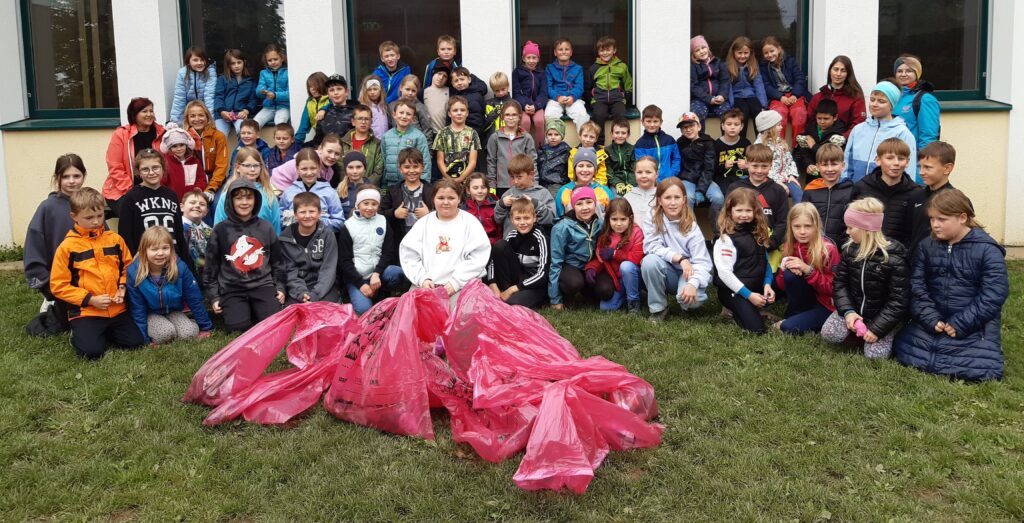 Der diesjährige Frühjahrsputz ist am 8. Mai angesetzt. Leider regnet es an diesem Tag. Deshalb wird die Müllsammelaktion einen Tag später durchgeführt. Ausgestattet mit Müllsäcken schwirren die Kinder in verschiedene Richtungen aus und sammeln emsig achtlos weggeworfenen Müll.