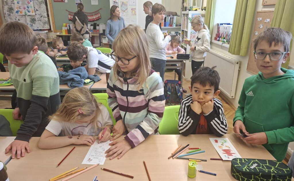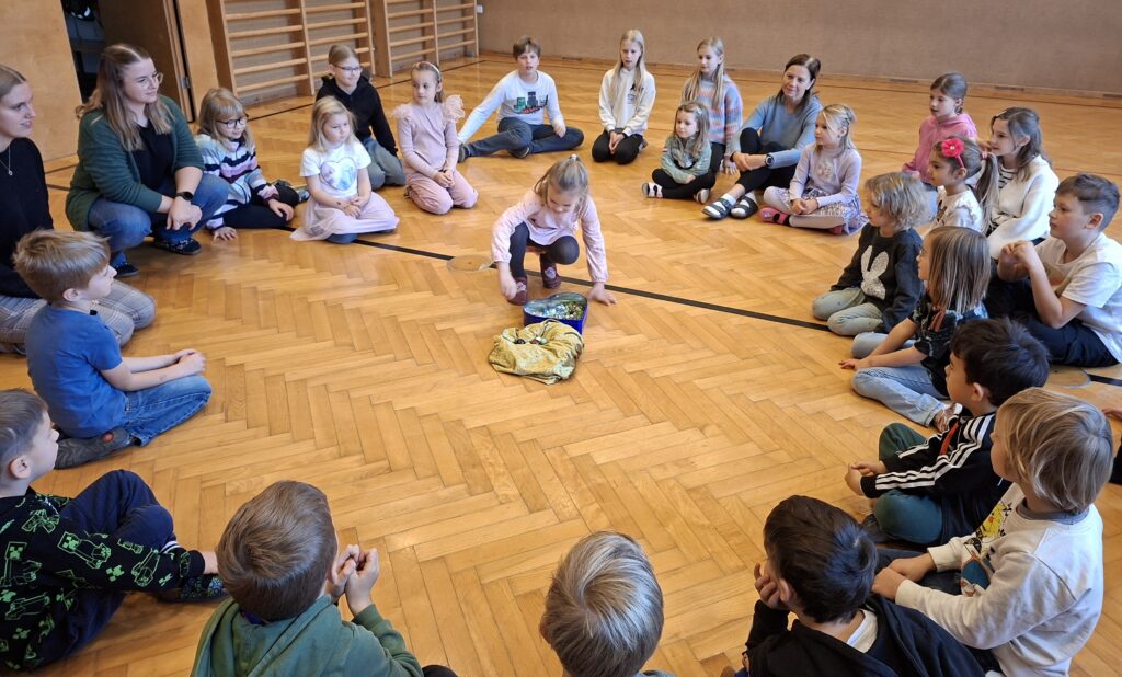 Die Schnupperkinder werden von der vierten Klasse mit einem Namensspiel und einem Begrüßungslied empfangen. Nach einem Spaziergang durch das Schulhaus wird gejausnet und anschließend gibt es Hofpause gemeinsam mit allen Schulkindern. Im Klassenzimmer gestalten die Großen mit den Kleinen ein Lesezeichen. Wir freuen uns schon auf den Schnuppertag im Sommer!